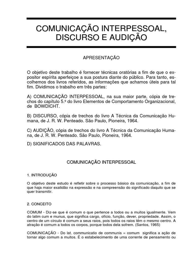 B) DISCURSO, cpia de trechos do livro A Tcnica da Comunicao Hu-