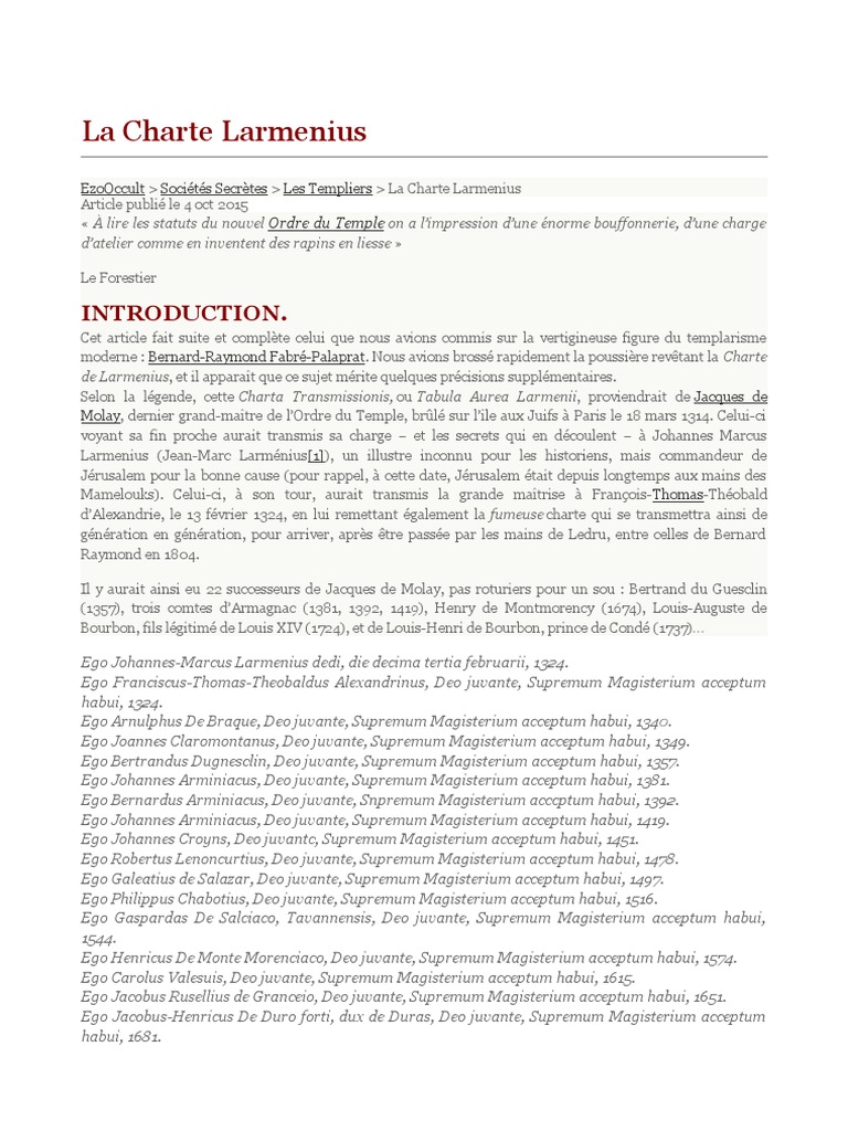 EzoOccult > Socits Secrtes > Les Templiers > La Charte Larmenius