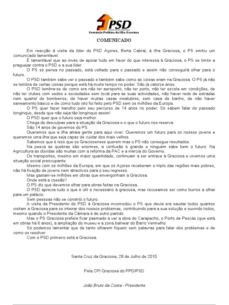 O PSD também sabe ver o passado e também sabe como as coisas eram na Graciosa. O PS já não