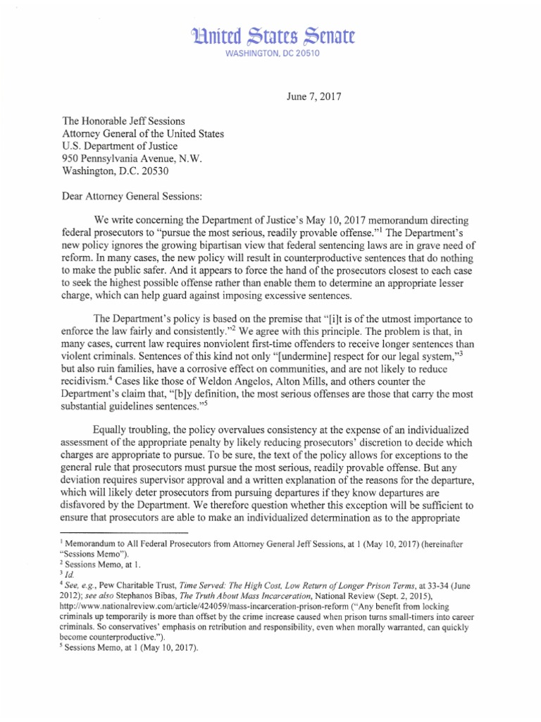 6.7.17 Letter to the Attorney General on DOJ Charging and Sentencing Policy FINAL SIGNED