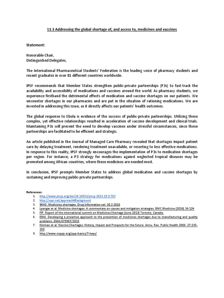 In conclusion, IPSF prompts Member States to address global medication and vaccine shortages by