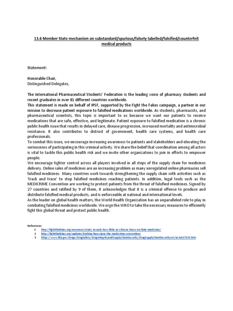 mission to decrease patient exposure to falsified medications worldwide. As students, pharmacists, and