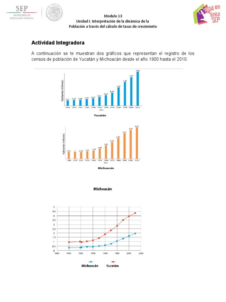 . Modulo 13 Unidad I.090)(100)=90 Tasa de crecimiento de 90% C=(.39 .35)=.74 Población de Michoacán para el año 2020: 4.35-3.99=.39 + 4.35 = 4.090)(4.74 millones de habitantes.090 (.99)/3. Interpretación de la dinámica de la Población a través del cálculo de tasas de crecimiento Michoacán: Sustituyendo C= (4.