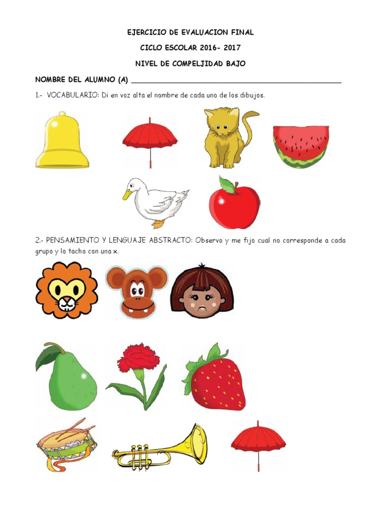 2.- PENSAMIENTO Y LENGUAJE ABSTRACTO: Observo y me fijo cual no corresponde a cada