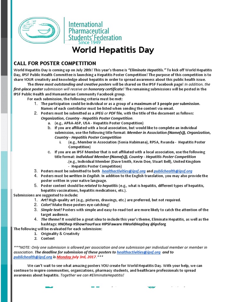 Day, IPSF Public Health Committee is launching a Hepatitis Poster Competition! The purpose of this competition is to