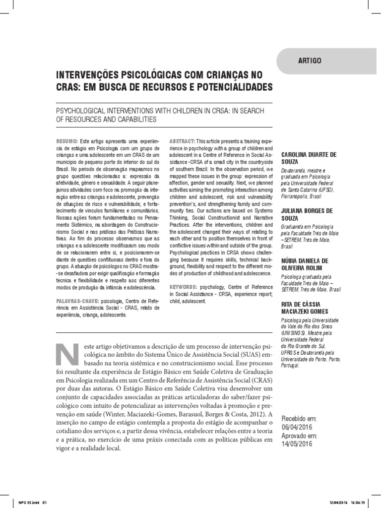 Cincia e Profisso, 31 (2), 296-313. cologia & Sociedade, 24(2), 293-299. com crianas no CRAS 45