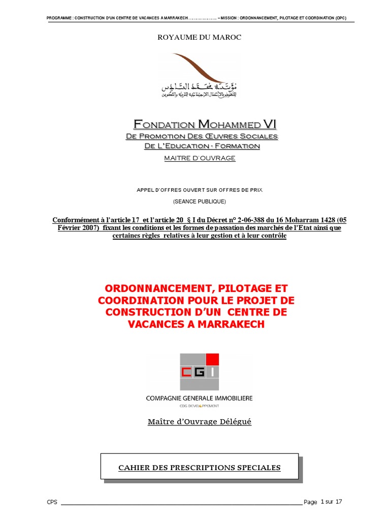 dordonnancement, pilotage et coordination du programme de construction dun centre de vacances Marrakech.