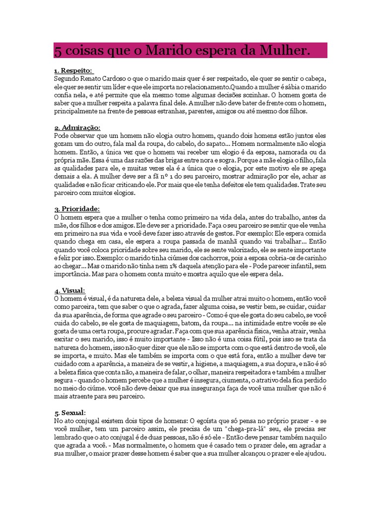 mulher, tem que comunicar para seu marido, o que voc gosta, ou no, voc tem que ajud-lo a