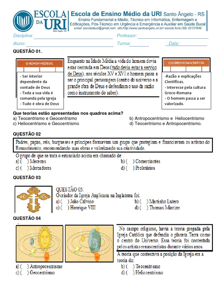 QUESTO 12: O que Antropocentrismo? Diferencie de Teocentrismo.