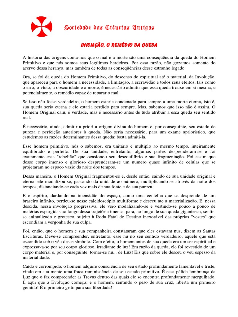 Artigo Iniciao, o Remdio da Queda Sociedade das Cincias Antigas 2