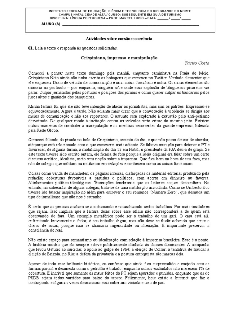 02. Reescreva os trechos fazendo a devida coeso. Utilize artigos, pronomes ou advrbios. No se