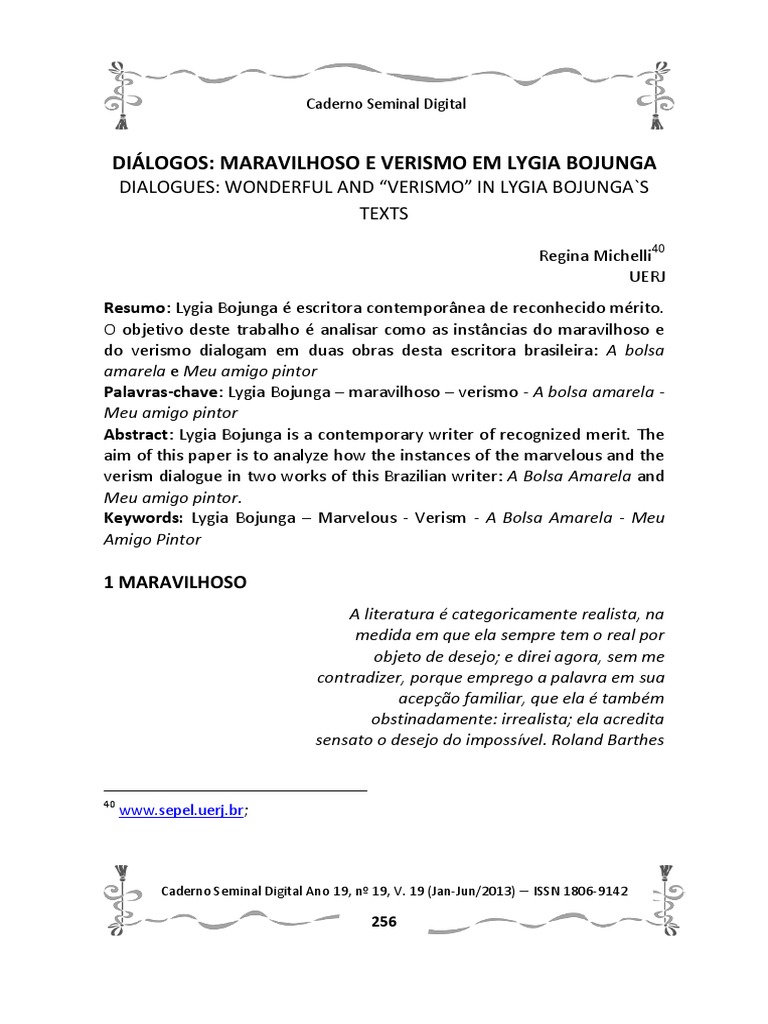 Keywords: Lygia Bojunga Marvelous - Verism - A Bolsa Amarela - Meu