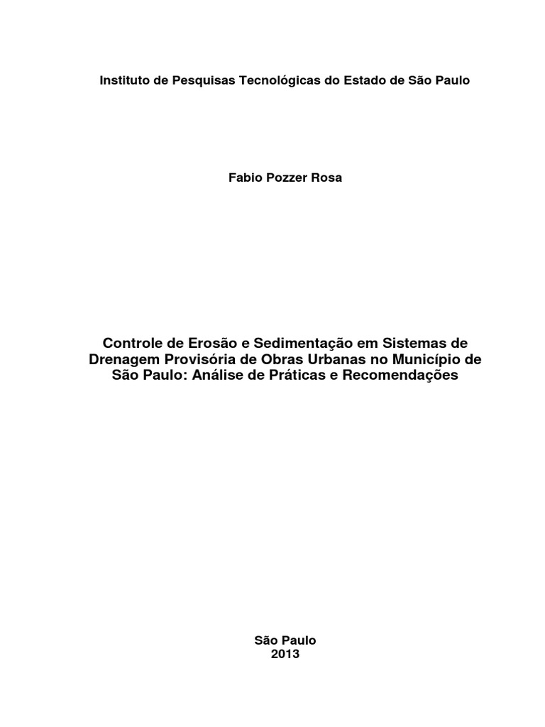 Palavras Chaves: drenagem provisria; eroso e sedimentao; poluio; obras