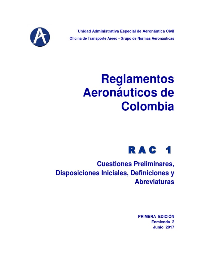 M. Despegue y aterrizaje cortos. STOL. Matrícula. Radiotelefonía. 01083 del 21 de Abril de 2017.215 del 25 de Abril de 2017 SIGMET. Normal o estándar.p. Sistema de Alerta de Tráfico y Prevención de Colisiones (Traffic alert and Collision Avoidance System). (Type Certificate). RAC 1 116 .L. r. Zona de Toma de Contacto. Certificado Tipo. Punto de Ruta (W/P) Posición geográfica predeterminada que se utiliza para la definición de ruta o aproximación por instrumentos o con el propósito de reportar progresos que se definen en relación con la posición de la estación VORTAC. Revoluciones Por Minuto. RNP. RVR. RNAV. RPL. Búsqueda y Salvamento.m. Salario Mínimo Legal Mensual Vigente.Grupo de Normas Aeronáuticas REGLAMENTOS AERONÁUTICOS DE COLOMBIA ________________________________ REG. Pista. TAS.M. Plan de Vuelo Repetitivo. STC. 50. Alcance Visual en la Pista. o radiotelefonista. S. (Runway) SAR. TDZ. Velocidad Aérea Verdadera. Certificado Tipo Complementario. TCAS. Información relativa a fenómenos meteorológicos en ruta que puedan afectar la seguridad de las operaciones aéreas. Performance de Navegación Requerida. RTF. Unidad Administrativa Especial de Aeronáutica Civil Oficina de Transporte Aéreo . Publicada en el Diario Oficial No. STD. TC.V. (True Airspeed). SARPS Normas y Métodos Recomendados Nota: Abreviatura adicionada conforme al artículo PRIMERO de la Resolución No. RWY.