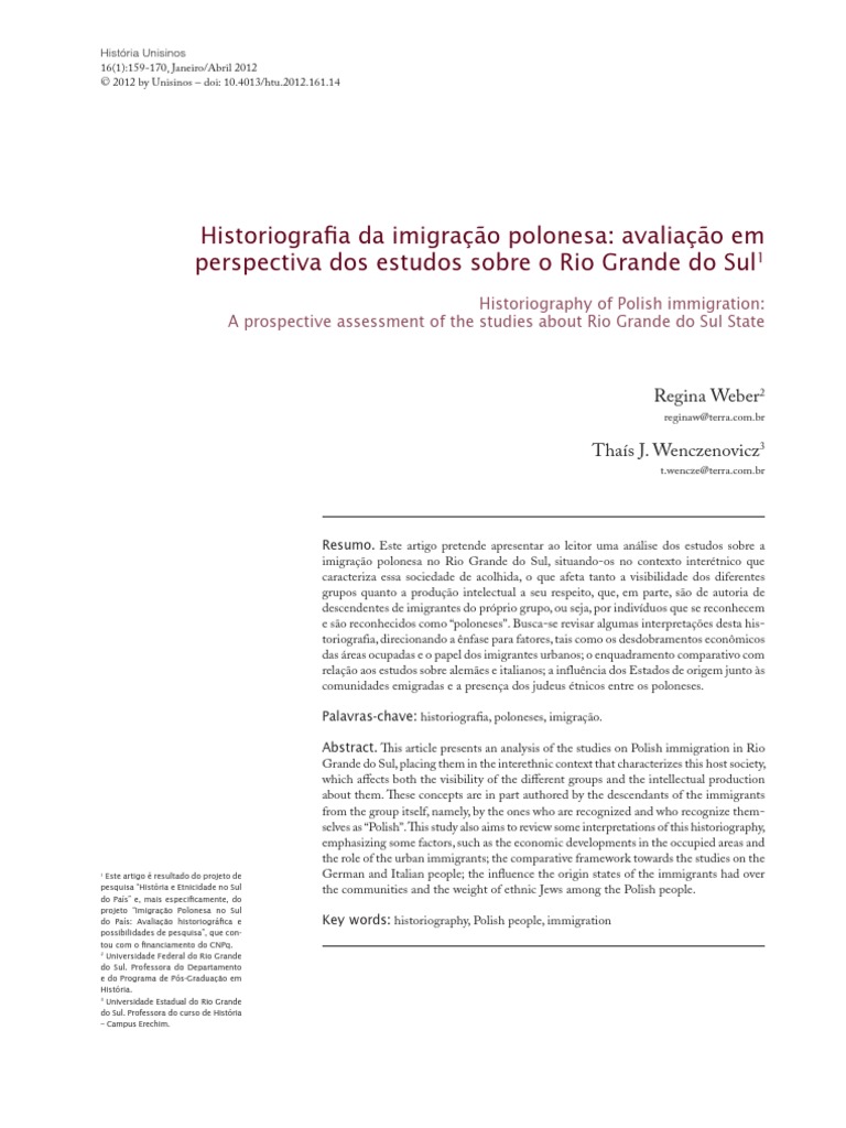 do Pas: Avaliao historiogrfica e Key words: historiography, Polish people, immigration