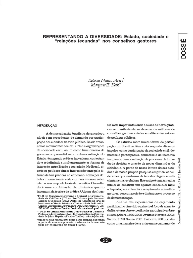 CADERNO CRH, Salvador, v. 21, n. 52, p. 99-112, Jan./Abr. 2008