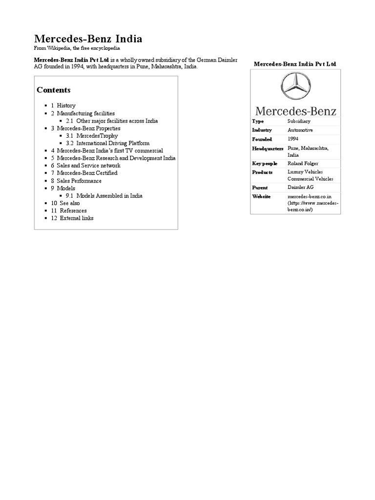Mercedes-Benz India once again. Mercedes-Benz India is a wholly owned subsidiary of the Daimler AG. Mercedes-Benz India