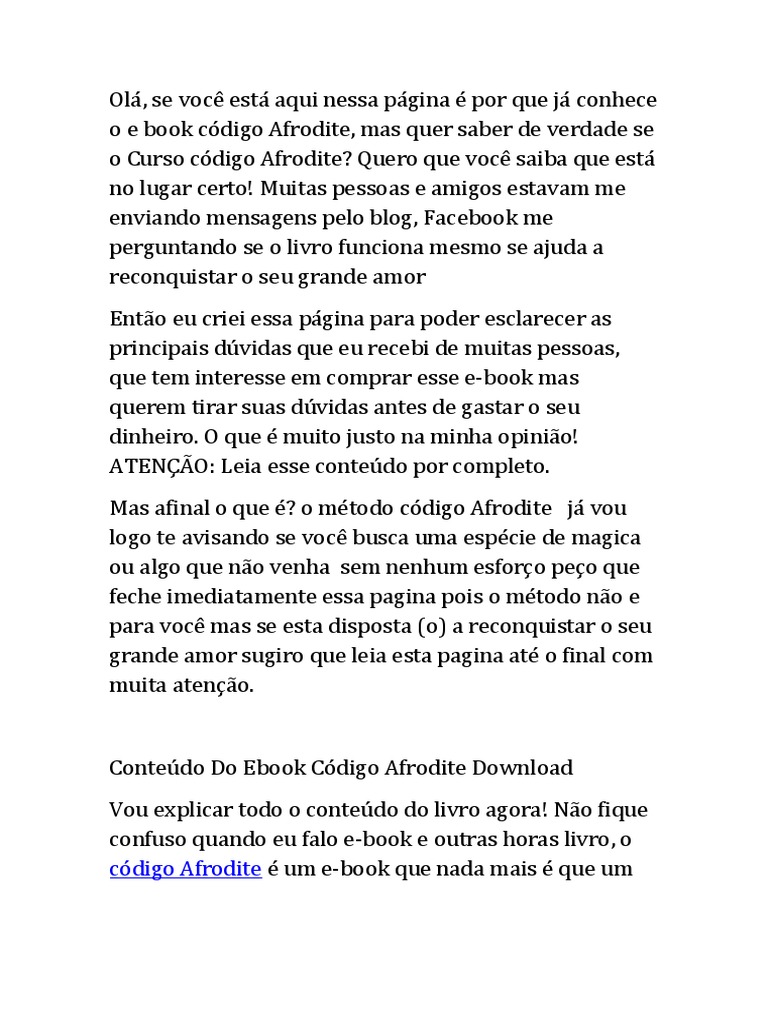 o e book cdigo Afrodite, mas quer saber de verdade se