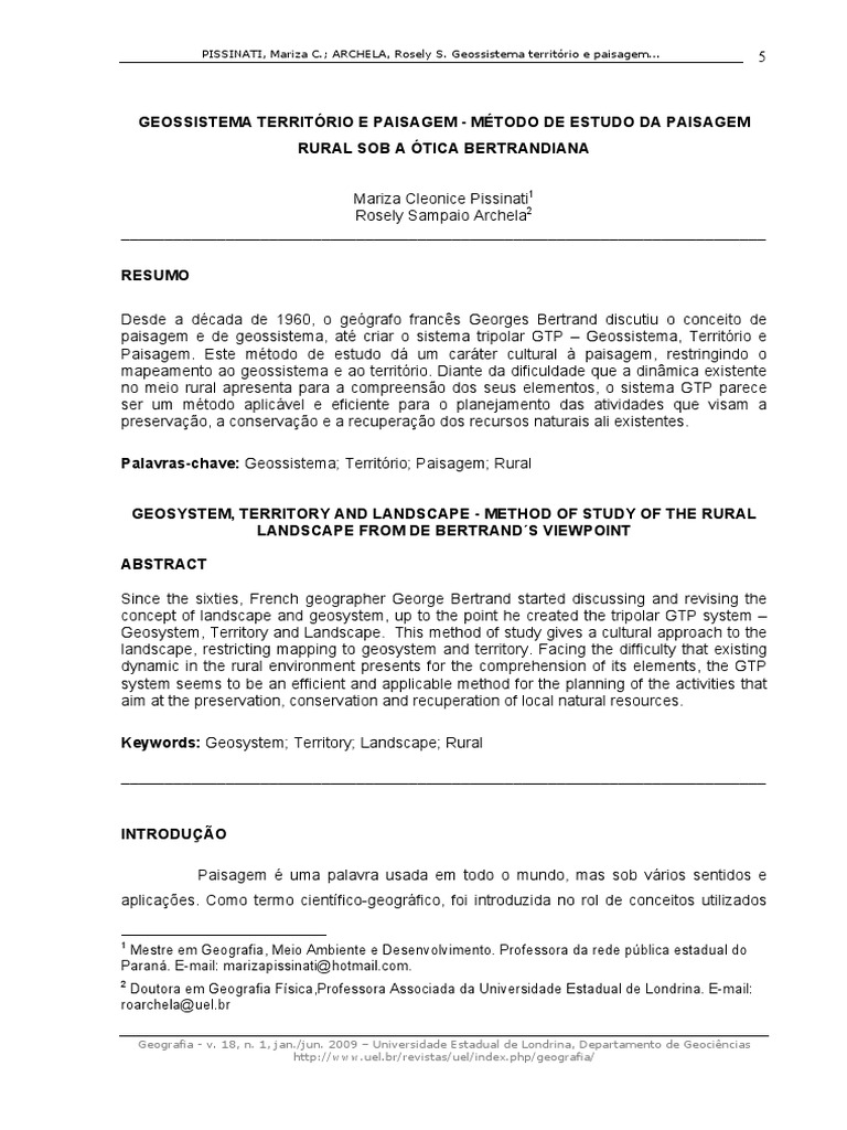 PISSINATI, Mariza C.; ARCHELA, Rosely S. Geossistema territrio e paisagem...
