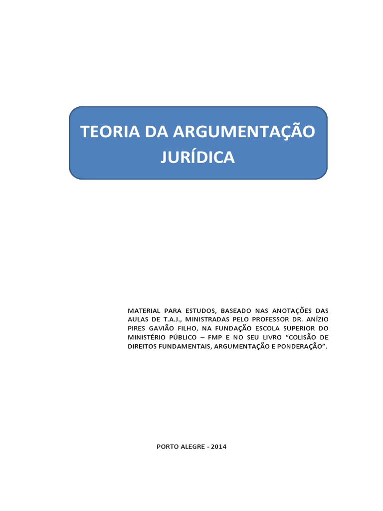 TEORIA DA ARGUMENTAO JURDICA MATERIAL PARA ESTUDOS