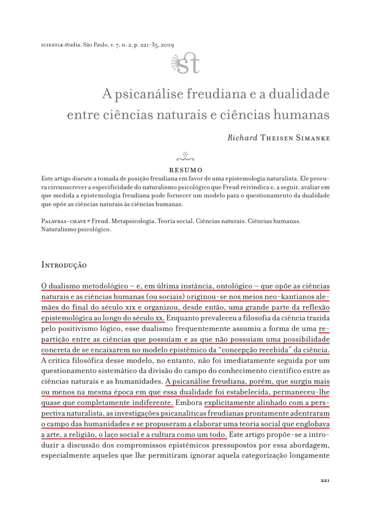 ra circunscrever a especificidade do naturalismo psicolgico que Freud reivindica e, a seguir, avaliar em
