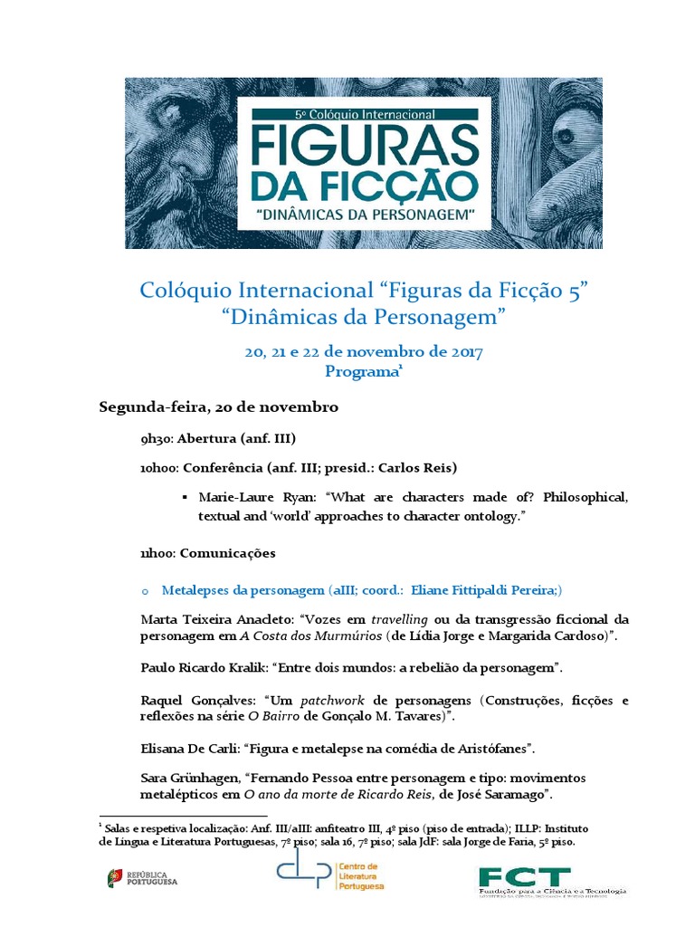 o Dinmicas da personagem (sala 16; coord.: Maria do Cu Fraga)