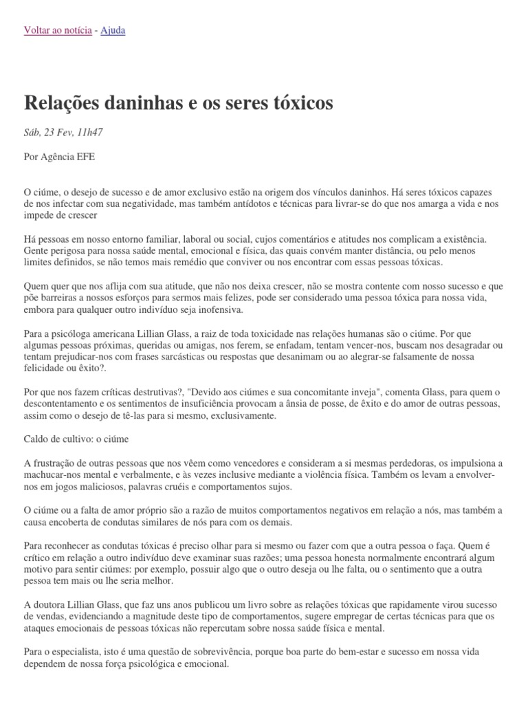 pe barreiras a nossos esforos para sermos mais felizes, pode ser considerado uma pessoa txica para nossa vida,