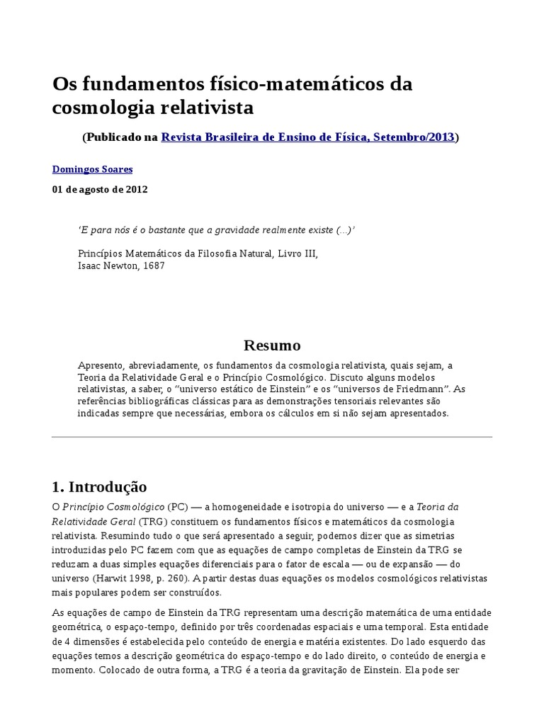 (Publicado na Revista Brasileira de Ensino de Fsica, Setembro/2013)