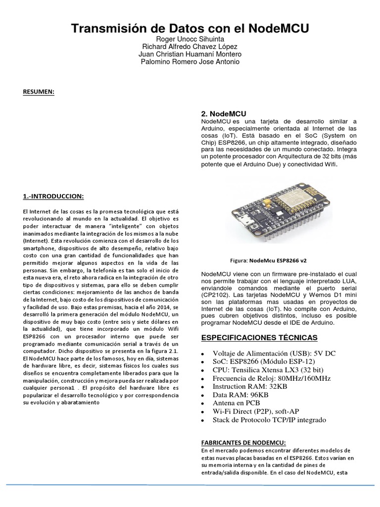 desarrolló la primera generación del módulo NodeMCU, un pues cubren objetivos distintos, incluso es posible