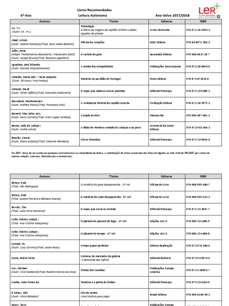 6 Ano Leitura orientada Ano letivo 2017/2018