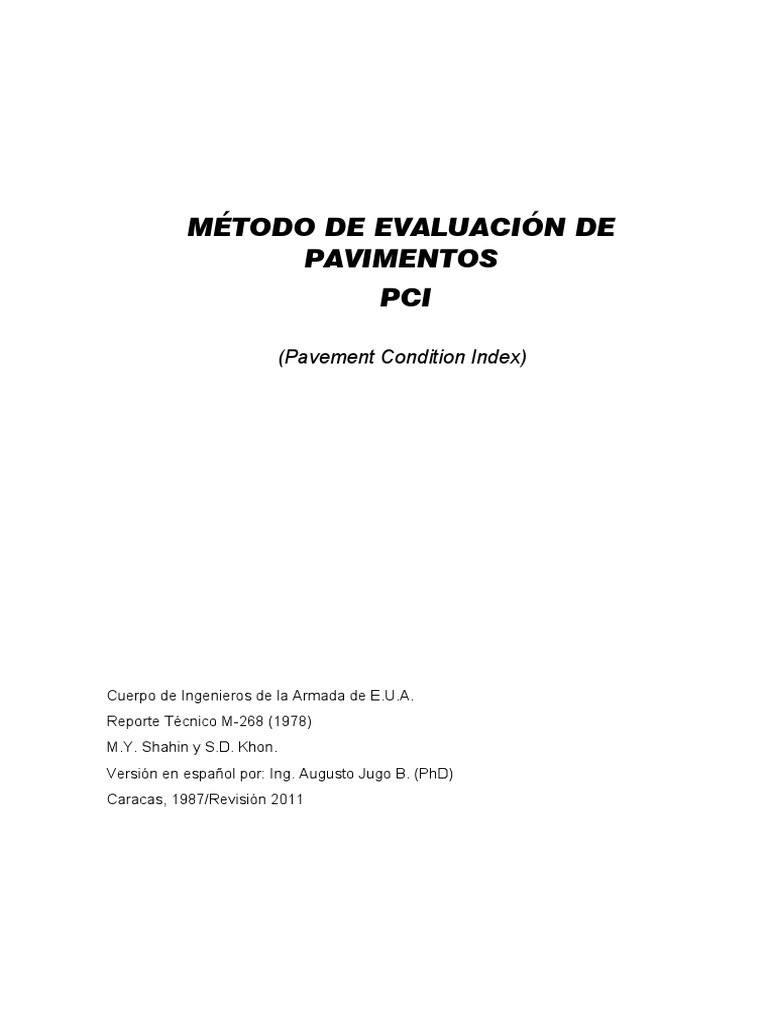 El método de evaluación de pavimentos PCI, fue desarrollado por M.Y. Shahin y S.D. Khon y
