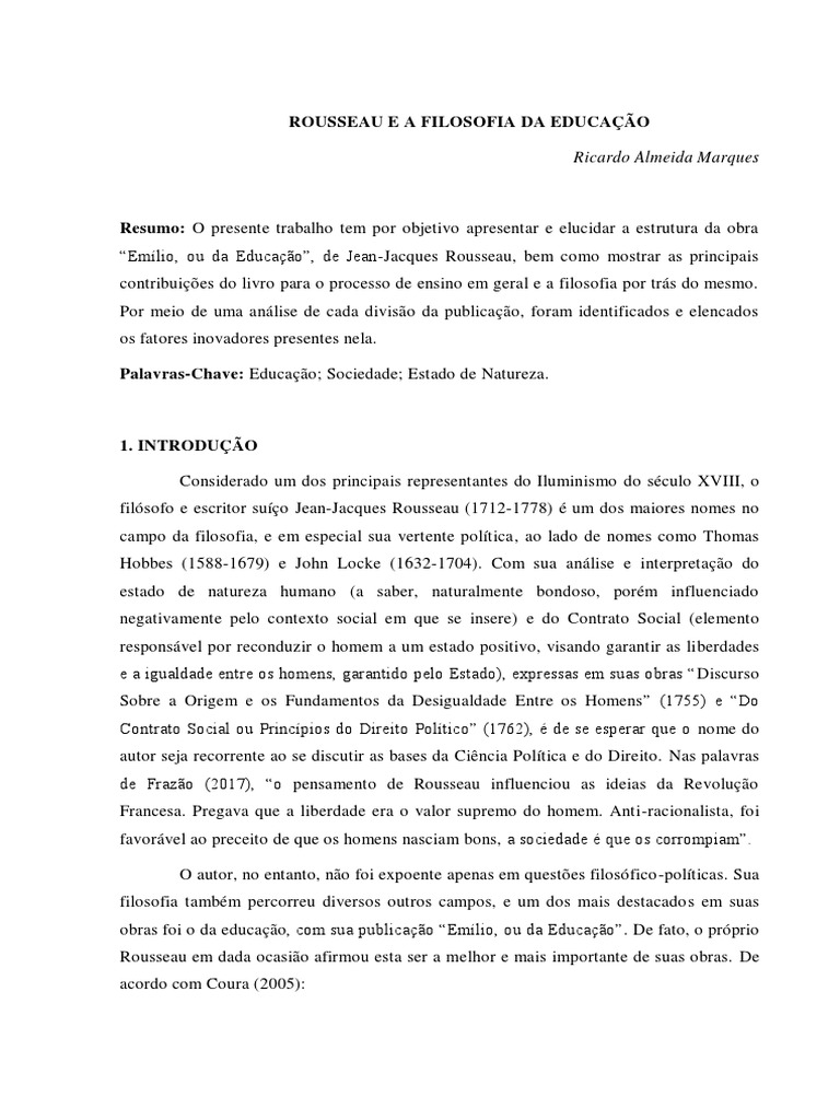 Palavras-Chave: Educação; Sociedade; Estado de Natureza.