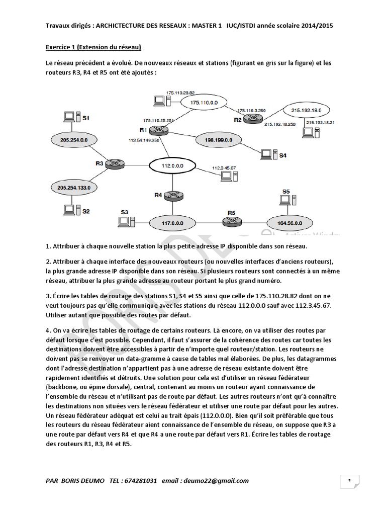 Travaux dirigs : ARCHICTECTURE DES RESEAUX : MASTER 1 IUC/ISTDI anne scolaire 2014/2015