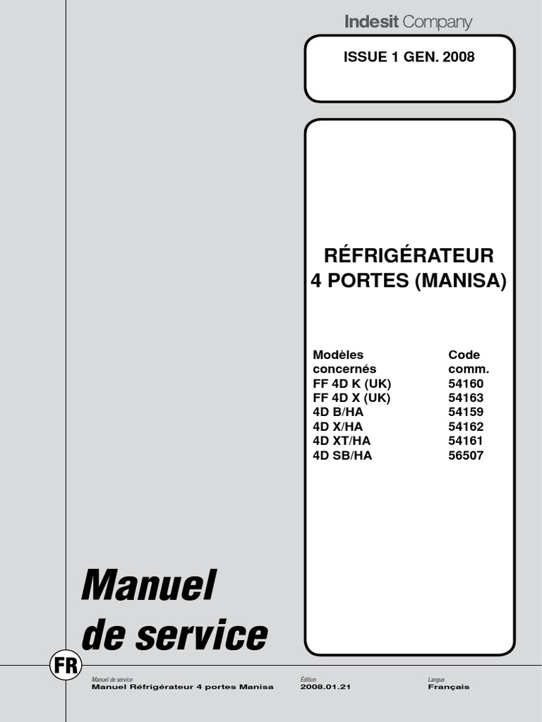Manuel Réfrigérateur 4 portes Manisa 2008.01.21 Français