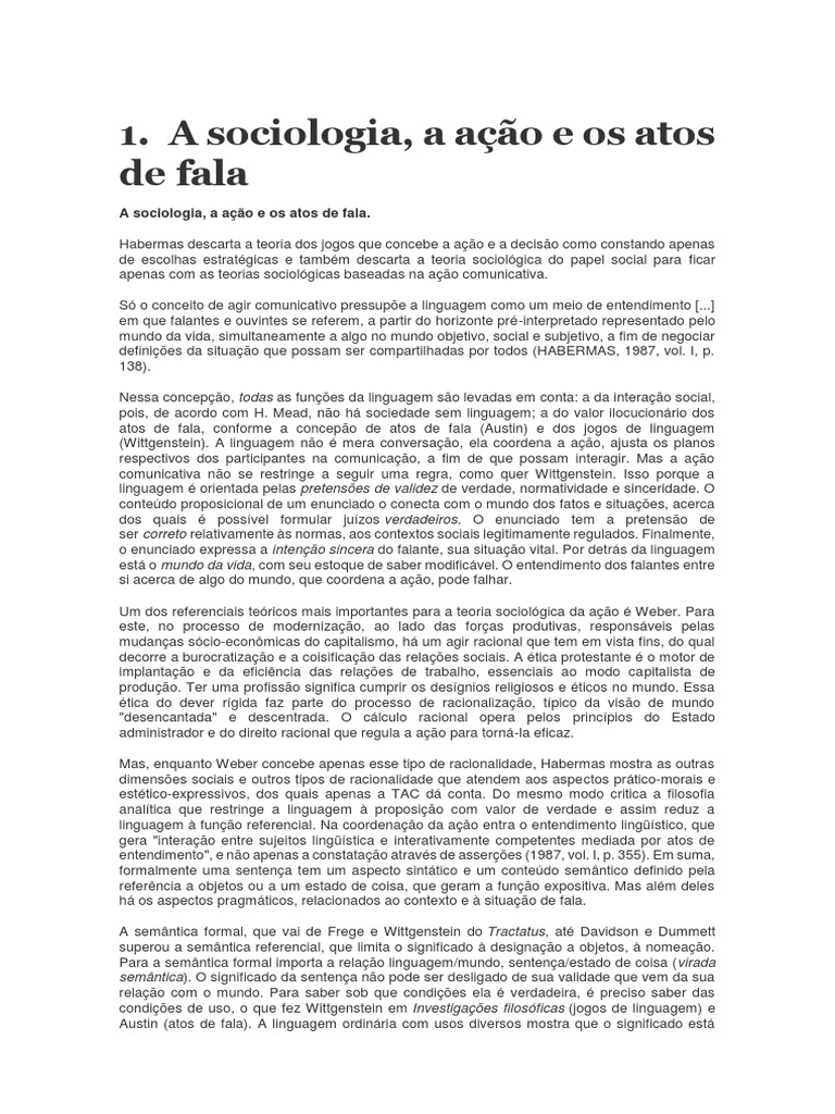 Wittgenstein, Austin, interpretados pela TAC. A ação social é compartilhada, por isso mesmo ela