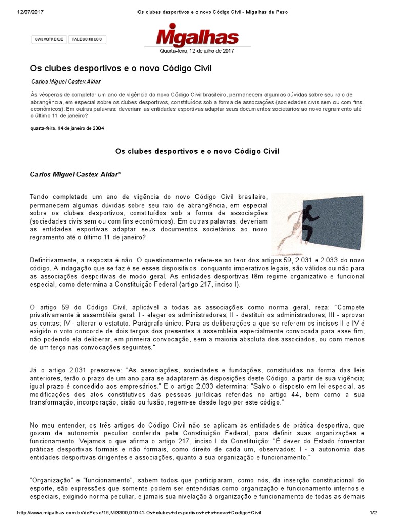 12/07/2017 Os clubes desportivos e o novo Código Civil - Migalhas de Peso