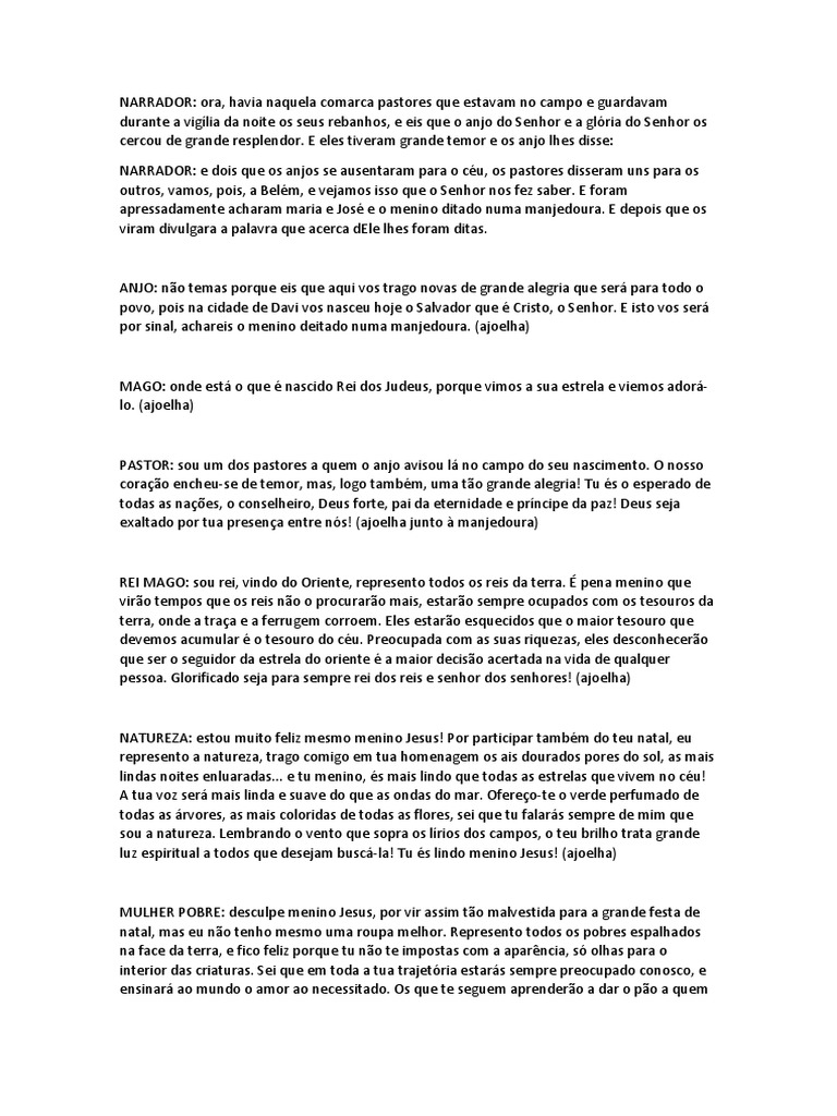 NARRADOR: e dois que os anjos se ausentaram para o céu, os pastores disseram uns para os