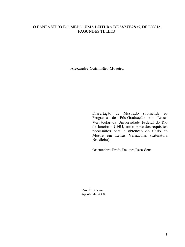 como parte dos requisitos necessários à obtenção do título de Mestre em Literatura Brasileira.