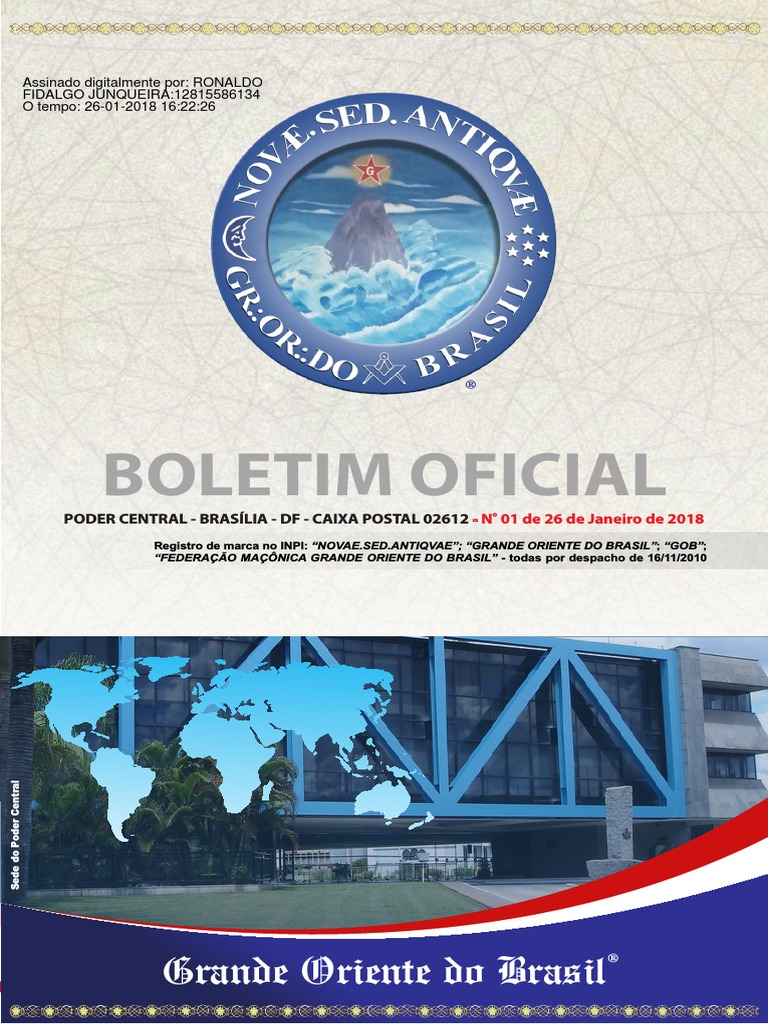 PODER CENTRAL - BRASÍLIA - DF - CAIXA POSTAL 02612 - No 01 de 26 de Janeiro de 2018
