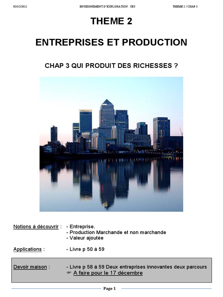 CHAP 3 QUI PRODUIT DES RICHESSES ?