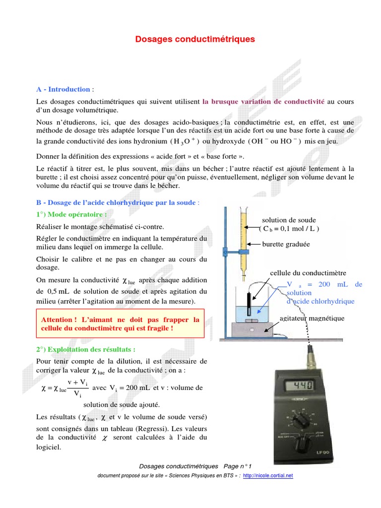 Nous n’étudierons, ici, que des dosages acido-basiques ; la conductimétrie est, en effet, est une
