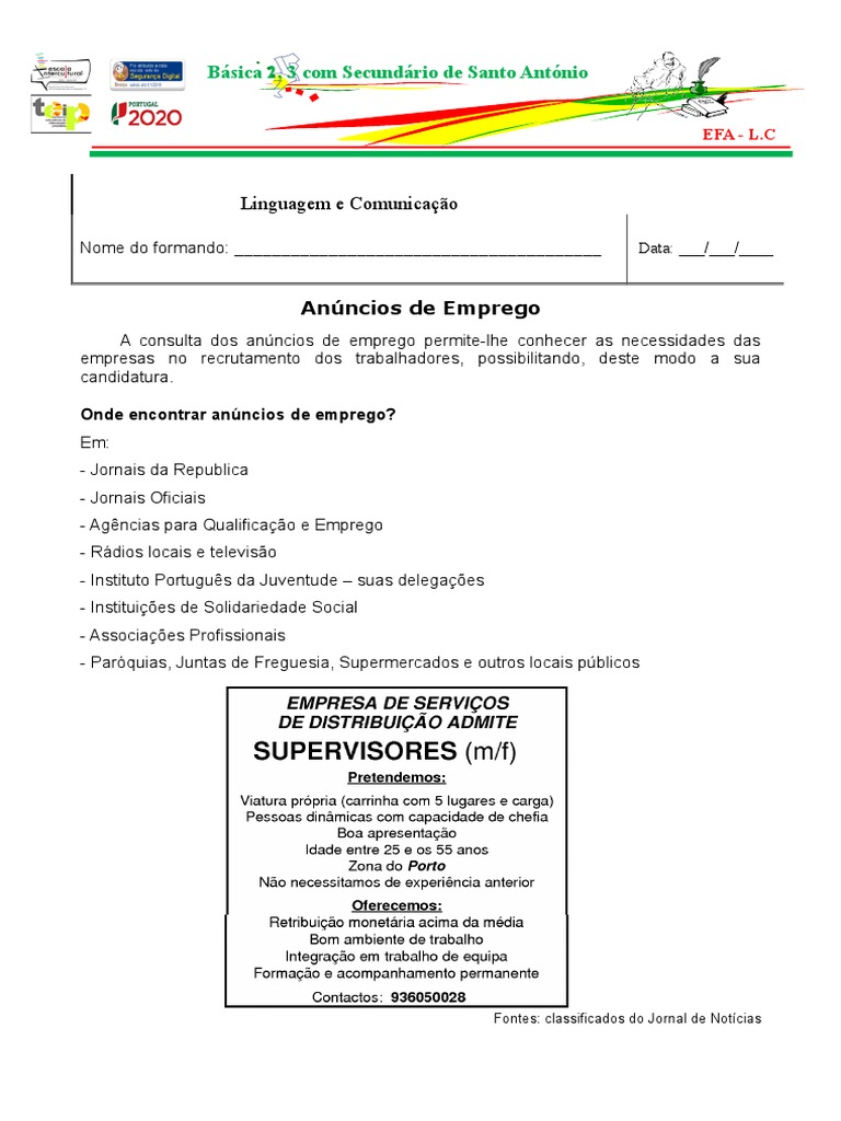 oferta de emprego. Justifica a tua resposta.