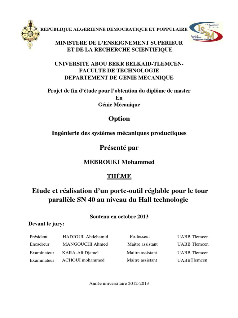 Notre projet c’est l’étude et la réalisation d’un porte-outil réglable pour le tour