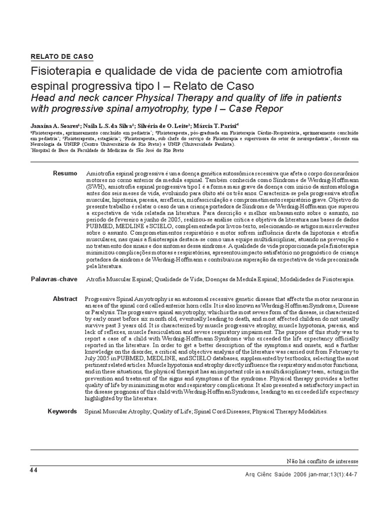 Keywords Spinal Muscular Atrophy; Quality of Life; Spinal Cord Diseases; Physical Therapy Modalities.