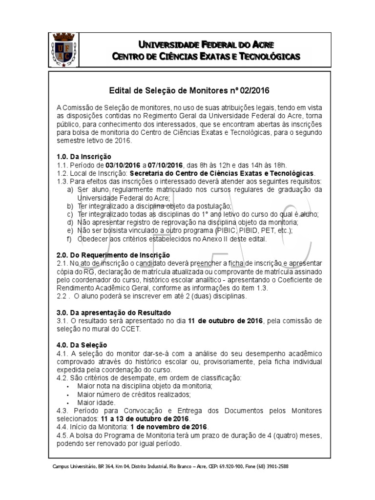 Edital de Seleção de Monitores nº 02/2016