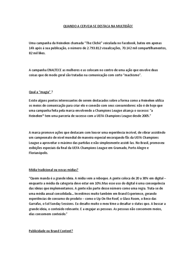 Existe alguns pontos interessantes de serem destacados sobre a forma como a Heineken utiliza