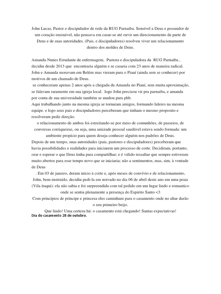 se falavam raramente em sua igreja local. logo John precisou vir pra parnaiba, e amanda