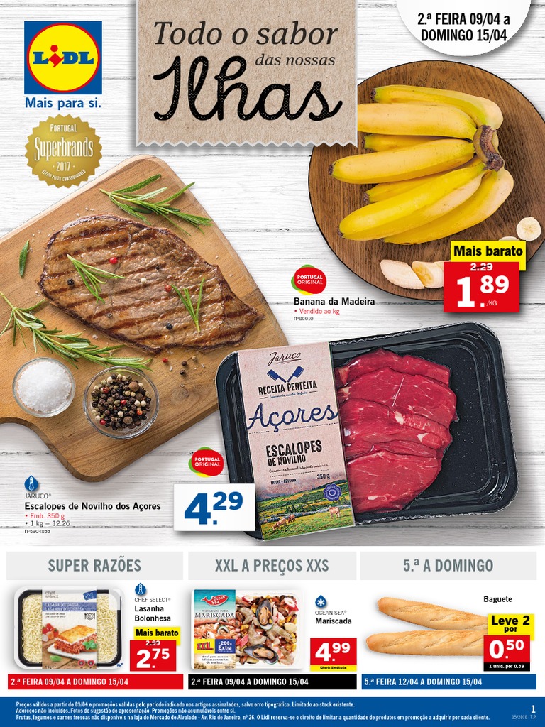 Fotos de sugestão de apresentação. 15/2018 · T.59 • Disponível em diversas variedades. este nº5903902 peixe magro é ainda servido na ilha com 5. O Lidl reserva-se o direito de limitar a quantidade de produtos em promoção a adquirir por cada cliente. Grelhado.42 nº5901436 FRUTAÇOR® Doces Tradicionais • Nas variedades: ananás dos Açores. 230 g • 1 kg = 13. . 300 g • 1 kg = 19. batata doce ou maracujá vermelho. 120 g • 1 kg = 7.00 nº5903956 QUINTA DOS AÇORES® Gelado Queijada Graciosa / 2.99 CADA Madeira Emblemático da Madeira. Preços válidos a partir de 09/04 e promoções válidas de 09/04 a 15/04 nos artigos assinalados. 200 ml • 1 L = 2.29 1.98 nº5905137 4. • Cada emb. o peixe- -espada preto é pescado desde o Filete de Peixe século XIX de forma Espada Preto artesanal. salvo erro tipográfico.99 CADA Dona Amélia • Cada emb. Limitado ao stock existente.09 Manteiga dos Açores • Emb. 6 Adereços não incluídos. 250 g • 1 kg = 4.36 nº2528 QUINTA DOS AÇORES® Iogurtes Líquidos com Polpa / Magros 0. • Cada emb. Promoções não acumuláveis entre si. 500 ml • 1 L = 9. da Madeira estufado ou em • Emb.99 banana e molho de maracujá.97 espetadas.89 Atum Posta ao Natural • Emb. Promoção válida de 09/04 a 15/04 Sempre disponível Mais barato LACTOLUS ® 1.P.95 CADA nº5904089/ 5904092 BONITO DOS AÇORES® 0.