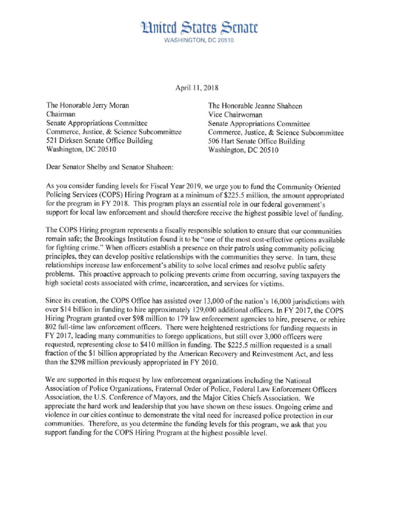 Letter COPS FY2019