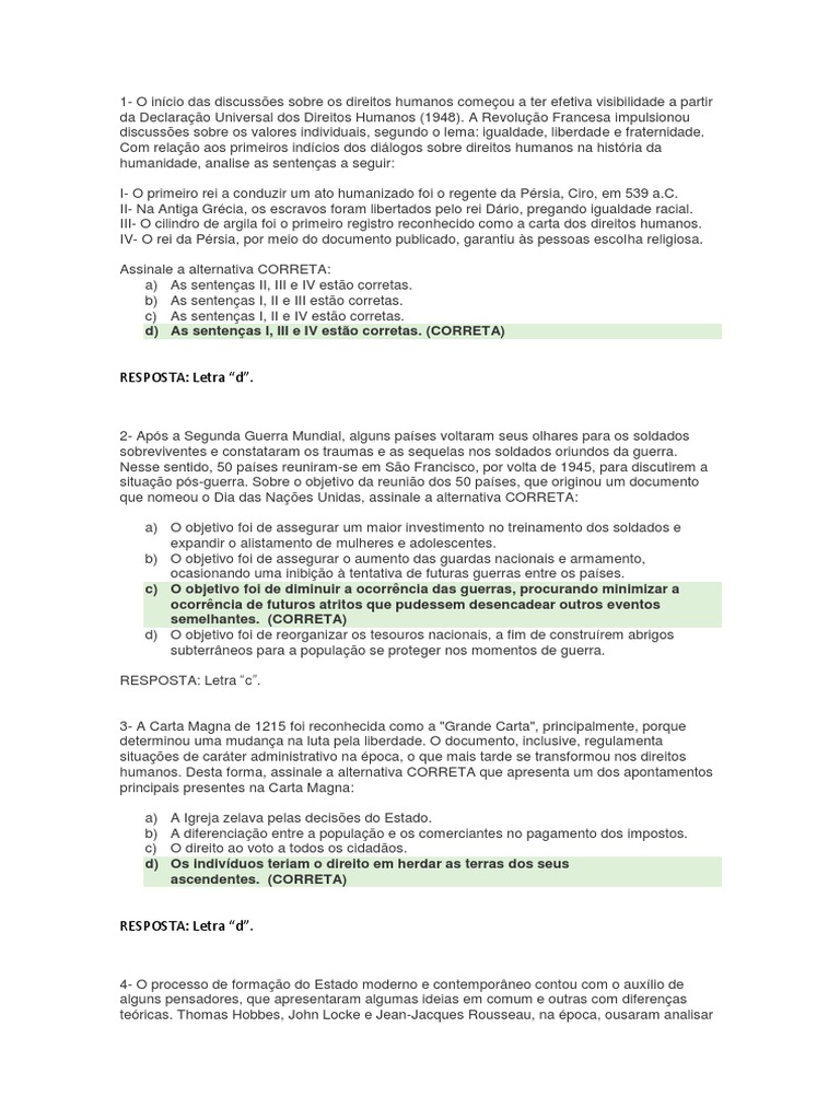 1- O início das discussões sobre os direitos humanos começou a ter efetiva visibilidade a partir